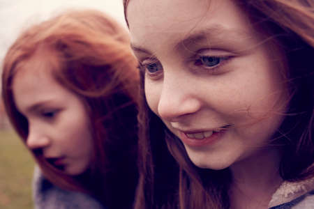 portrait of thoughtful serious boy with natural red hair, boy in contemplation