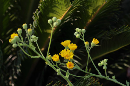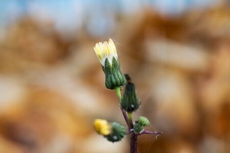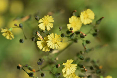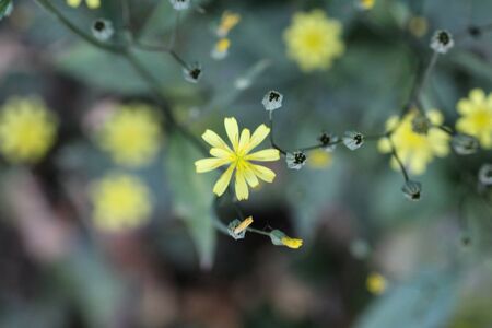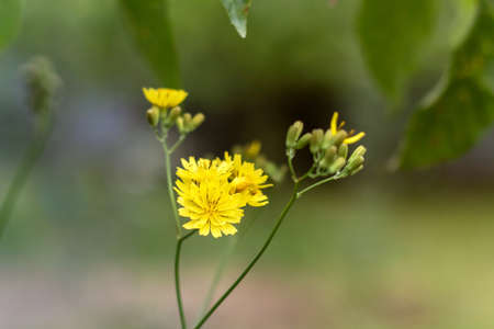 Indian lettuce (Lactuca indica) flowers. Asteraceae annual plants. Pale yellow ligulate flowers bloom in autumn. Young leaves are edible and have medicinal properties.