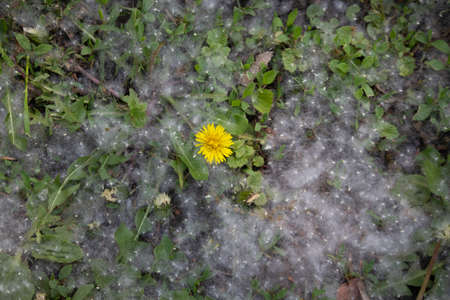 A tiny white wool and fur beautiful grass flower the street