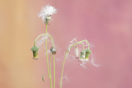 Faded dandelion flowers. Vintage toned. Macro with shallow depth of field.