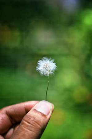 A selective of a small dandelion in a han