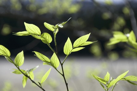 Close up of young green leaves in the sun