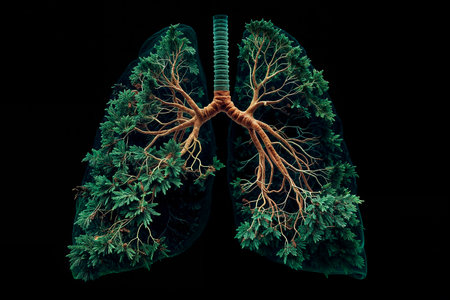 Lung green tree-shaped images, medical concepts, autopsy, 3D display and animals as an element