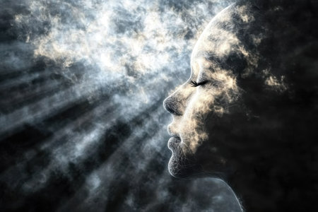 Ethereal double exposure smoke and nebula creating a cosmic portrait