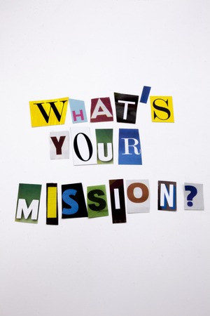 A word writing text showing concept of WHAT'S YOUR MISSION made of different magazine newspaper letter for Business case on the white background with space
