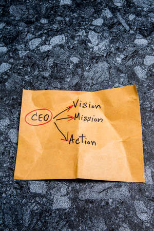 Vision Mission Values, text words typography written on paper against wooden background, life and business motivational inspirational concept