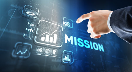 Mission business concept. Finacial success chart concept on virtual screen. Abstract business background.