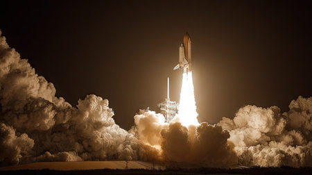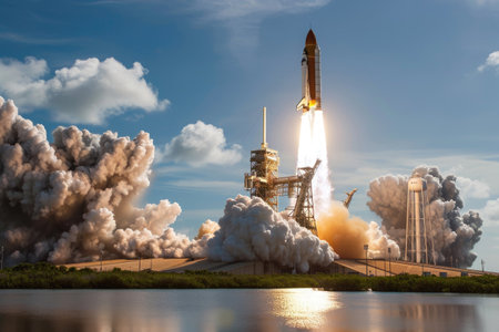 Space Shuttle Launching From Kennedy Space Center Launch Pad, A rocket blasting off to demonstrate accelerating inflation, AI Generated