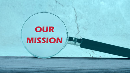 Medical concept. the medicine. The word OUR MISSION is written through a magnifying glass on an abstract background