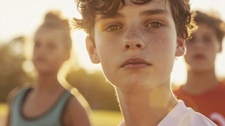 The close up picture of the teenager athlete standing with parent to exercise for healthy lifestyle, the athlete require skills like endurance, physical fitness, technique, strength and focus. AIG43.