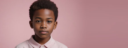 An African American Juvenile Boy, Isolated On A Pink Background With Copy Space. Generative AI