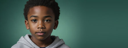 An African American Juvenile Boy, Isolated On A Jade Background With Copy Space. Generative AI
