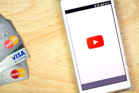 BUNG KAN, THAILAND - JANUARY 20, 2016: smart phone display youtube app and credit card on table