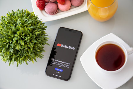 MONTREAL, CANADA - August 28, 2018: Google Youtube Music android app on Samsung s8 screen.