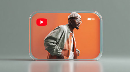 A vibrant depiction of the YouTube logo surrounded by a surreal, abstract landscape filled with floating red and black cubes. Concept background. Generative AI