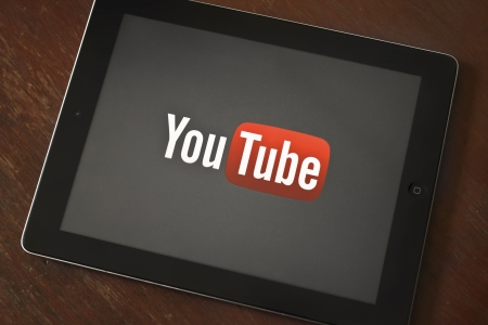 BANGKOK, THAILAND - MARCH 23, 2013: YouTube logo on Ipad's screen. Google makes a YouTube for iPad app on iOS 6