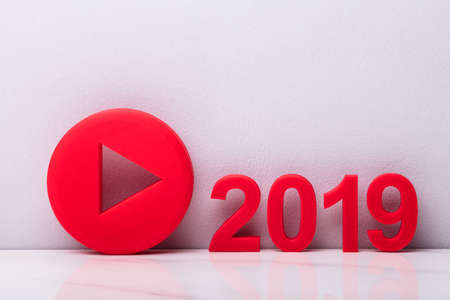 Red Play Icon Near Year 2019 Against White Background