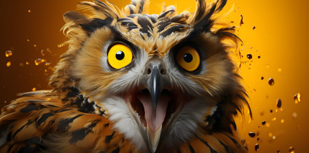 Angry owl with open mouth. 3D illustration. Orange background.