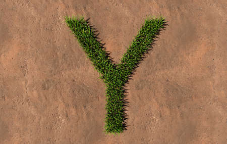 Concept conceptual green summer lawn grass symbol shape on brown soil or earth background, font of Y. 3d illustration metaphor for nature, conservation, organic, growth, environment, ecology, spring