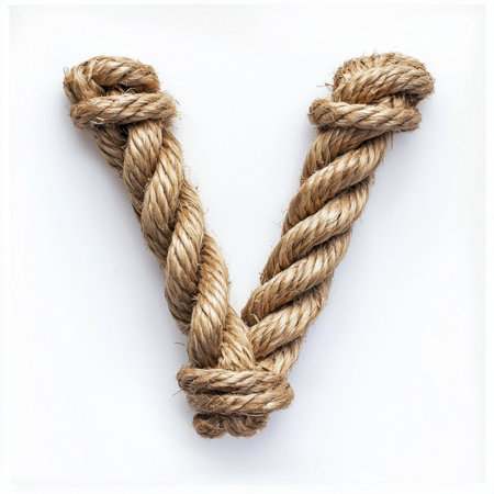 letter V intricately formed using twisted natural ropes set crisp white background highlighting its unique texture and craftsmanship use design elements.