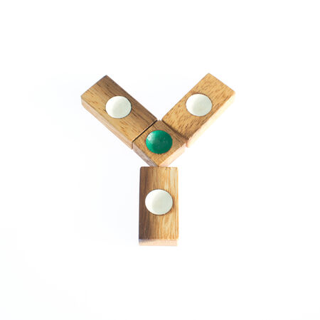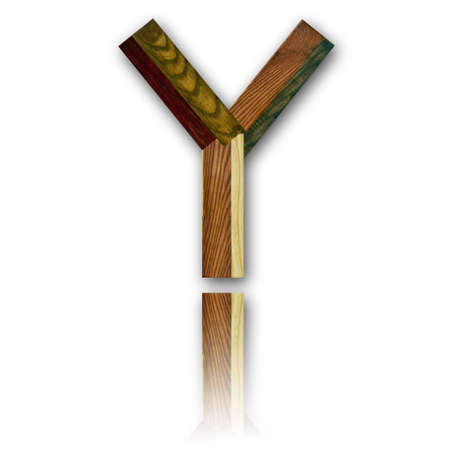 Wooden tangram puzzle as English alphabet letter Y shape on white background