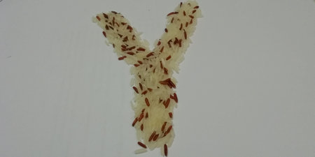 Alphabet letter Y - Peach colored plastic piece on yellow foamy background