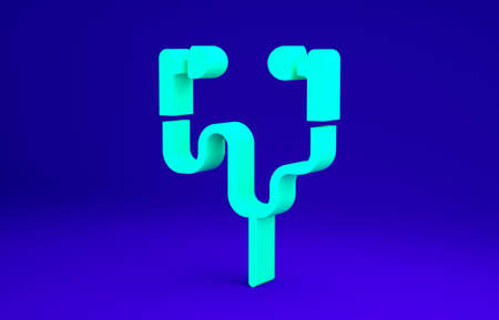 Green Air headphones icon icon isolated on blue background. Holder wireless in case earphones garniture electronic gadget. Minimalism concept. 3d illustration 3D render