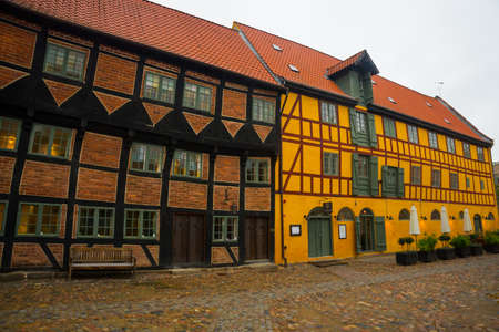 Odense, Denmark: Beautiful traditional houses on the street in Odense is the city birthplace of Hans Christian Andersen, Denmark