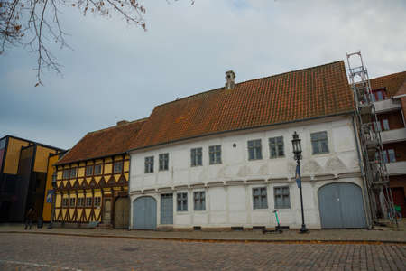 Odense, Denmark: Old homes in cobbled streets in Odense, the city of Hans Christian Andersen, Denmark