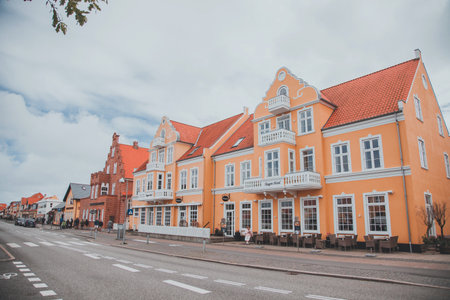 Ebeltoft, Denmark - 22 June 2019: the traditional historic village of Ebeltoft on Jutland in Denmark