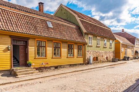 Typical wooden houses in the old town of Fredrikstad in Norway
