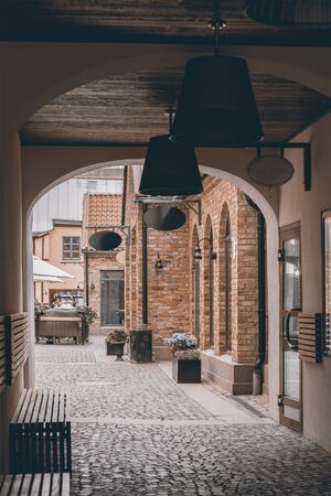 Image of cozy alley in Halmstad, Sweden. Vintage toned.