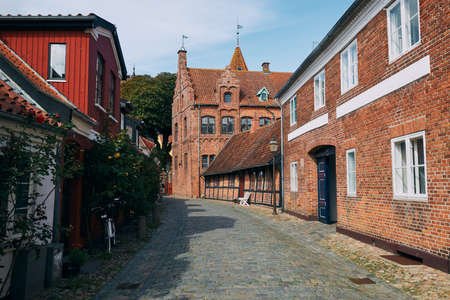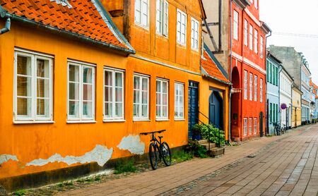 Aalborg, Denmark: Charming quiant streets with colorful traditional danish houses in historic Aalborg old town Aalborg, Denmark