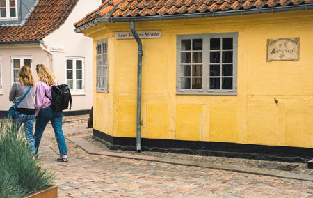 Odense, Denmark - May 23 2022: Hans Christian Andersen birthplace and original museum in the old town of Odense, Denmark, Europe
