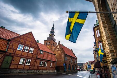 Helsingor city town with antique church and old buildings. Denmark