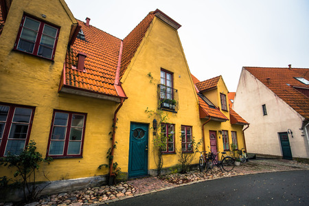 Viborg, Denmark, July 2018: Small colorful Scandinavian houses in Denmark
