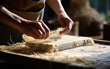 Natural fiber papermaking done using traditional methods