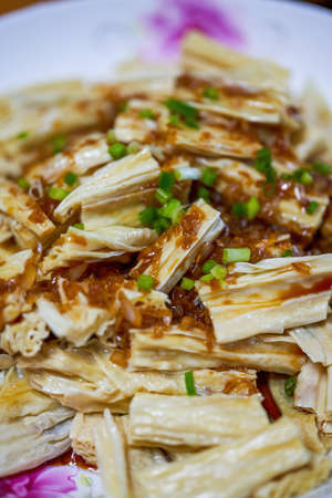 Delicious Chinese home cooking, yuba with green onions
