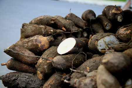 Tuberous roots of Cassava after harvest. Cassava is a root vegetable that contains vitamin C and copper.