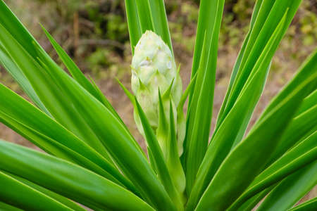 close up view of fresh green tropical plant yucca leaves for background