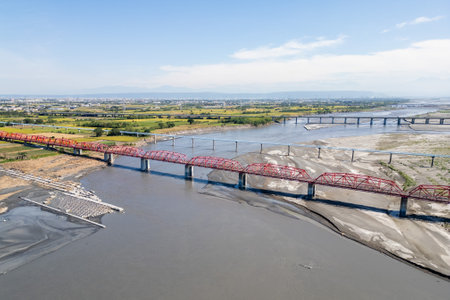 Aerial view of Xiluo Steel Bridge at Xiluo township in Yunlin, Taiwan