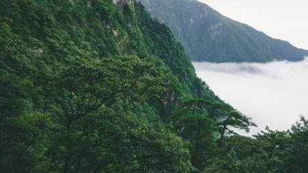 Mountain covered by clouds on top of Wugong Mountain (Wugongshan) in Jiangxi, China