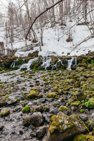Water stream of Oirase Gorge in Aomori, Japan. Oirase Gorge is most famous in summer for its lush green moss and wild ferns.