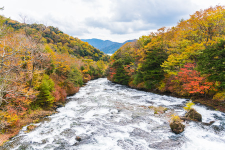 Beautiful fall color of the Oirase Gorge at Aomori, Japan