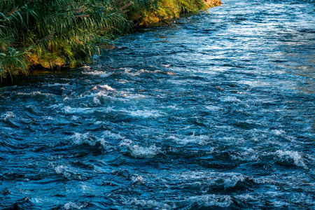 water in a mountain river. Mountain river stream flow. On a bright sunny day