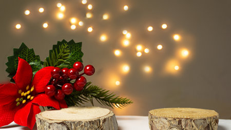 Christmas flat lay mock up on vintage wooden decoration