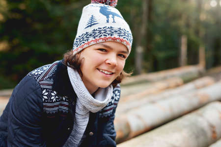 Portrait of smiling teenage boy in wintertime