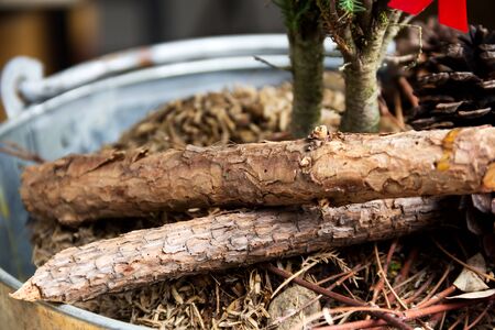 cut of a tree and branches of a Christmas tree on a dark background