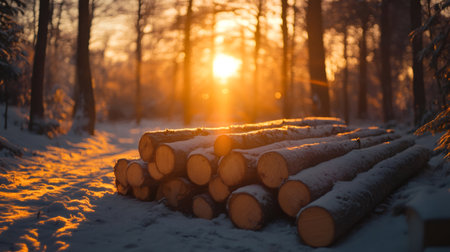 Forest pine trees log trunks felled by the logging timber industry round form