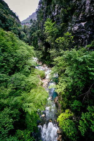 Beautiful natural mountain canyon with a mountain river and forest